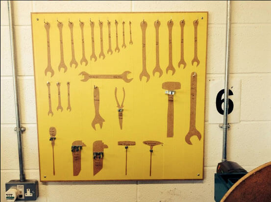 One excellent tool/technique for setting a workspace in order in an efficient manner and keeping it that way is to utilize the help of shadow boards. Shadow boards feature outlines of tools behind or beneath the locations in which they hang or sit when being stored. When an item is removed from its specific location, it is easy for a worker to quickly see where to put it back by its silhouette. Shadow boarding can be easily applied to already existing surfaces and pegboards where items are kept.